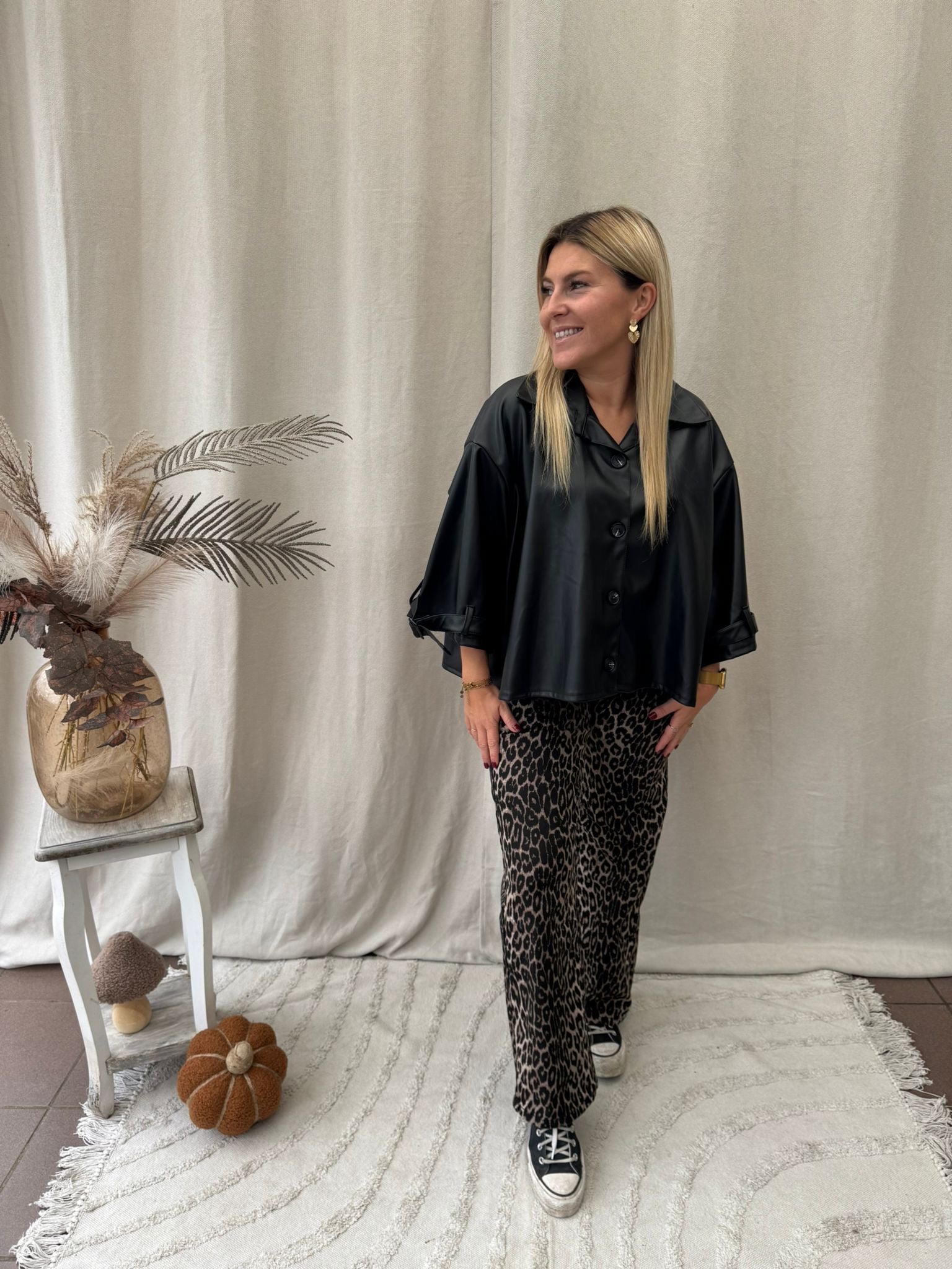 De vest kan zowel als jasje of als blouse gedragen worden.